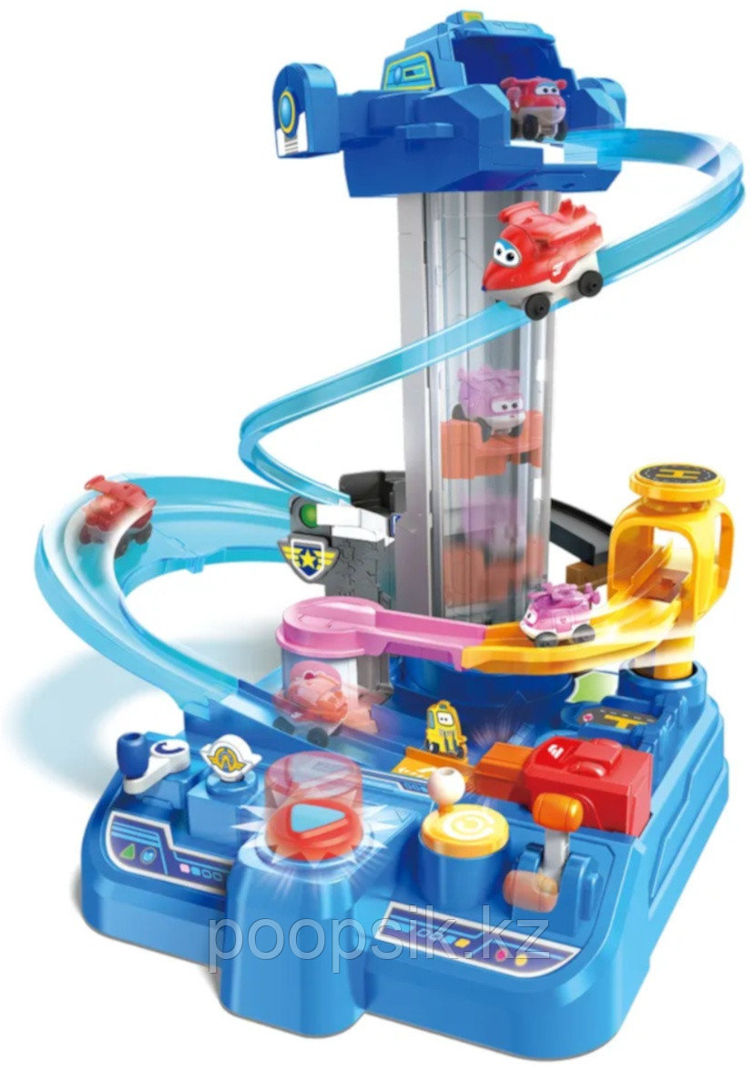 Игровой набор для фанатов мультфильма «Супер Крылья» с двумя креативными и весёлыми маршрутами для запуска. Поставь игрушку на стартовую позицию и опусти рычаг, чтобы отправить Джетта на миссию. Покрути синий рычаг, чтобы поместить фигурку на подъёмник и нажми на большую красную кнопку. Джетт взлетит на самый верх, откуда его можно снова запустить с высоты, как в мультфильме. Самолётик проскользит по петле вниз и начнёт ускоряться. Платформы набора подвижные, что даёт возможность производить запуски разными способами. Четыре рычага для перемещения платформ и управления движением фигурок. В комплект входит набор стикеров и 2 мини-фигурки (Джетт и Диззи). Играй двумя героями мультфильма и устрой гонку с друзьями. В наборе 5 кнопок для восьми способов запуска во время захватывающих зрелищных соревнований и 1 захватывающий высокоскоростной лифт!
